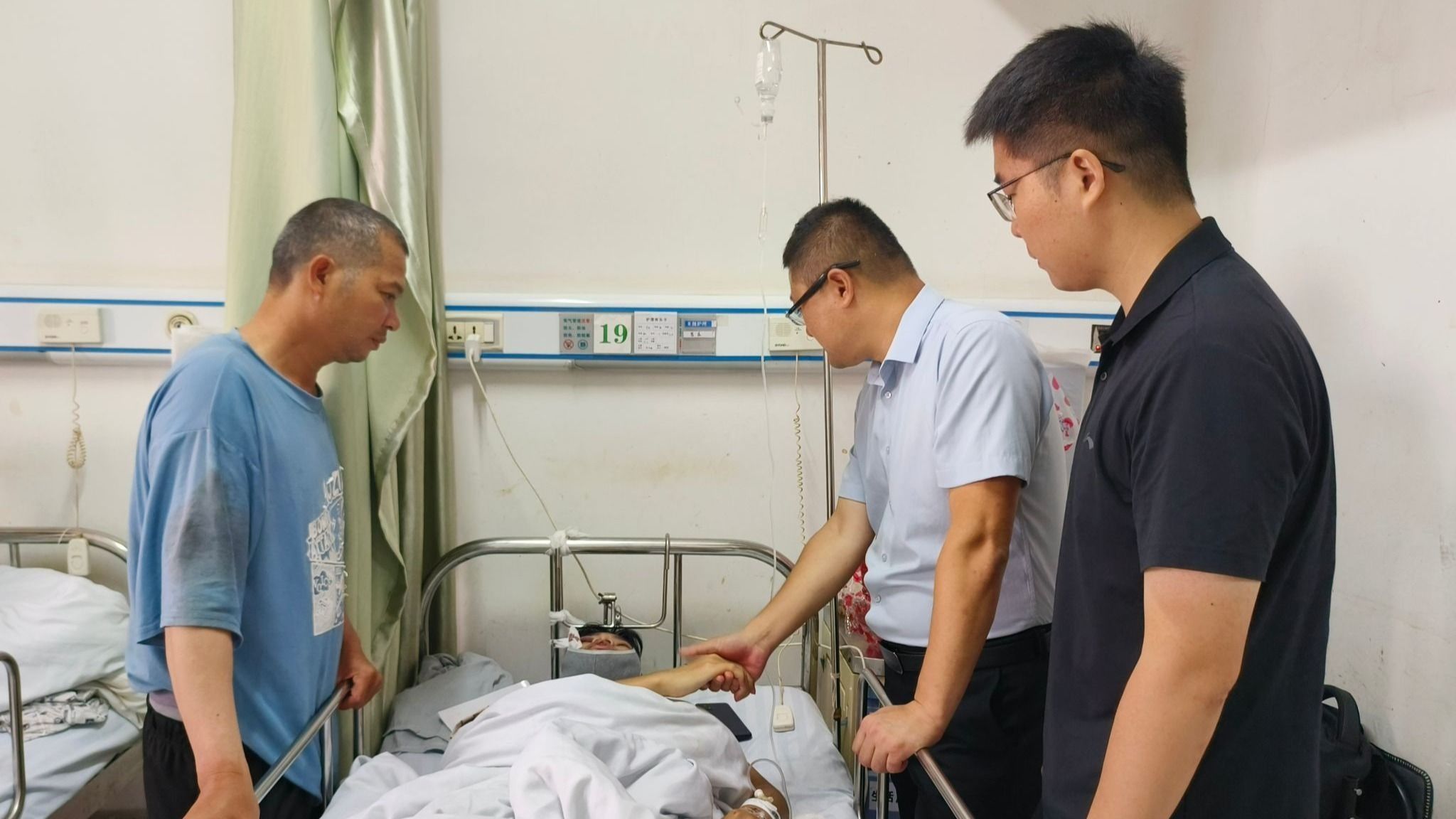 的关心和问候,病房内气氛感人。