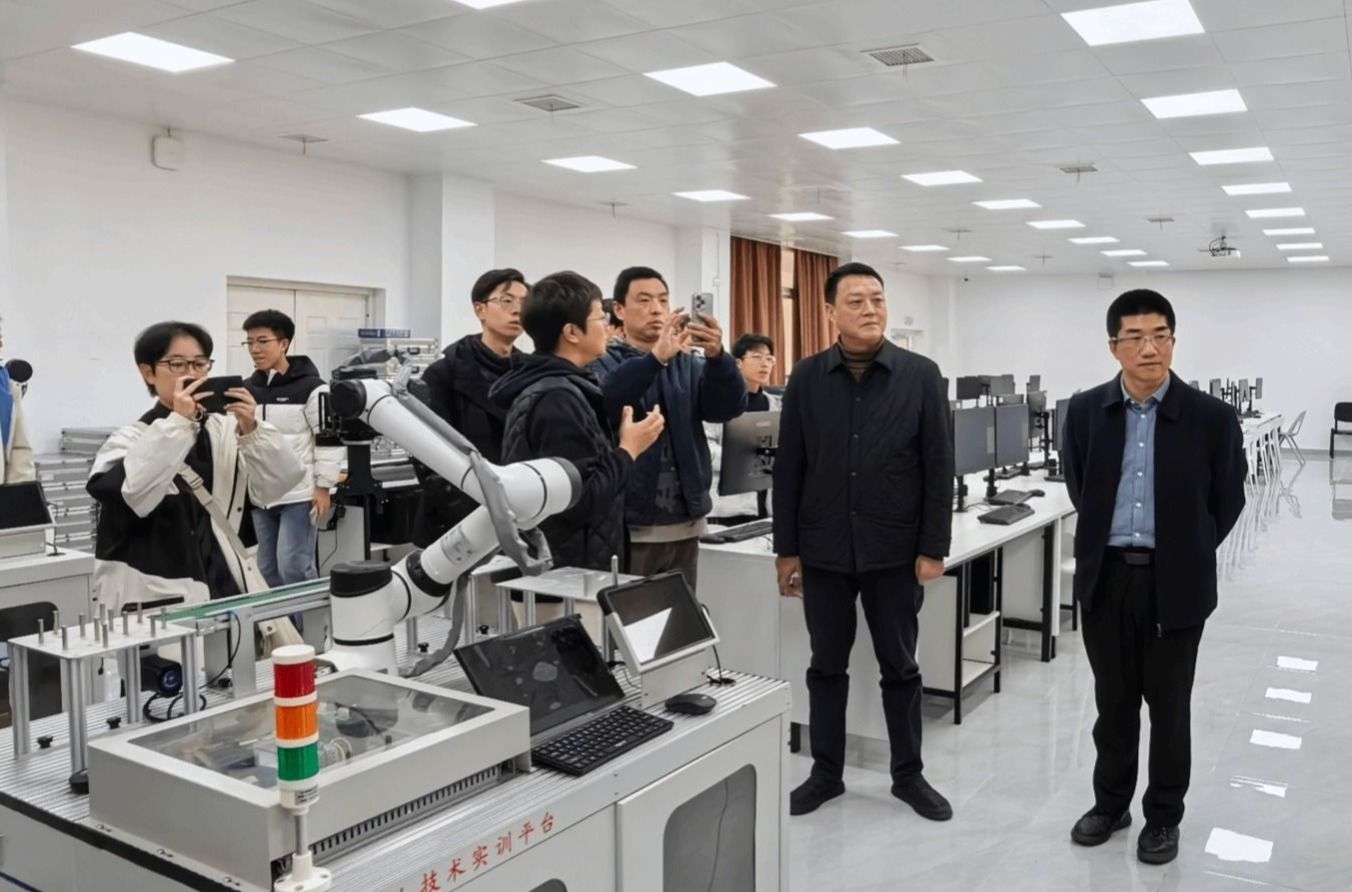刘星带领嘉宾和同学们先后参观软件工程信创实验室、计算机基础实验室、计算机与智能实验室、计算机贯通实验室等多个实训阵地。她结合各实验室特点,现场演示国产化算力平台运行环境,讲解智能机器人控制原理及其在自动化拍摄等电影工业场景中的应用潜力。参观学生围绕技术细节与应用前景踊跃提问,刘星逐一细致解答。